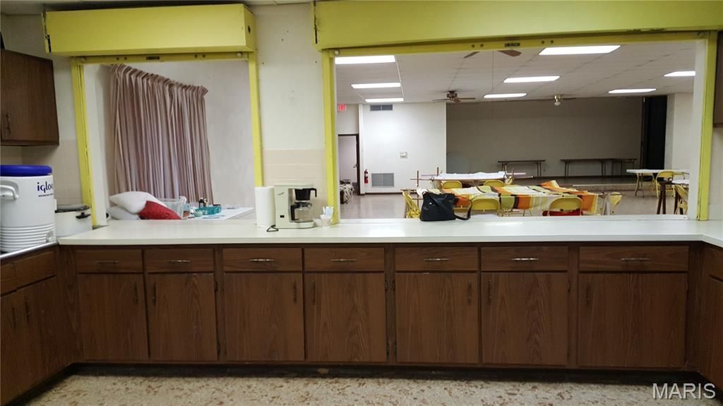 This is an almost 5000 sq ft Brick Building. It has a large banquet hall with a stage, a commercial registered Kitchen, 2 Offices, & a 50 X 30 attached garage. There are 2 attached parking lots, 1 to the right side & 1 at the back. It sits at the corner of Kaskaskia Street & Benton Street across the street from the well known Bull Pen Restaurant & Bar... This property could be used for a multitude of different businesses..(Restaurant, Bar, Church, Theater, Wedding Chapel, Adult day care etc.)104 Benton is the back parking lot that is included with the sale. Parcel #18-28.0-428-012 Location: City
