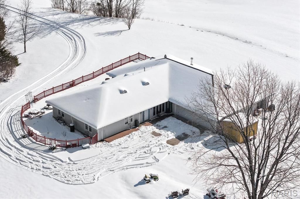 Don't miss your own private paradise on just over 17 picturesque acres in the desirable Waterloo School District. This one-of-a-kind home offers over 3,000 square feet of open living space with 4 bedrooms and 2 full bathrooms. The main living area welcomes you with a spacious living room featuring a see-through fireplace shared with the dining room, perfectly positioned next to the kitchen for effortless entertaining. The center of the home includes a bonus room, primary bedroom, and full bath. The opposite wing offers exceptional flexibility with three additional bedrooms, a full bath, second family room with a wet bar/kitchenette, walk-in cedar closet, walk-in changing room, and a large bonus room highlighted by an indoor Master Spa swim spa. An oversized attached two-car garage and shed provide abundant storage. Approximately 10 acres of farmland are currently leased, offering added income potential.