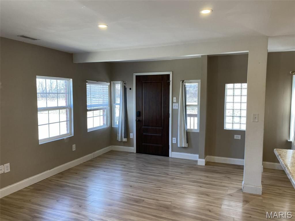 Great starter home in an out of the way location with a huge garage and nice sized yard for all your projects and hobbies. Open floor plan and great natural light fill the living room, dining room and kitchen area. A large breakfast bar will seat everyone! Kitchen appliances will remain and even the washer and dryer are included for you. There is a small desk area in the kitchen, plenty of cabinets, countertops and a built in pantry for all your cooking needs. The basement is mostly unfinished with a room used as an office located there. It includes a walk in closet for storage. The garage is 26 x 32! Great space for woodworking, hobbies or boats and ATVs. The large yard would be great for pets or play and could even house a garden! This parcel was recently split and taxes are to be determined. Come make this one your own!